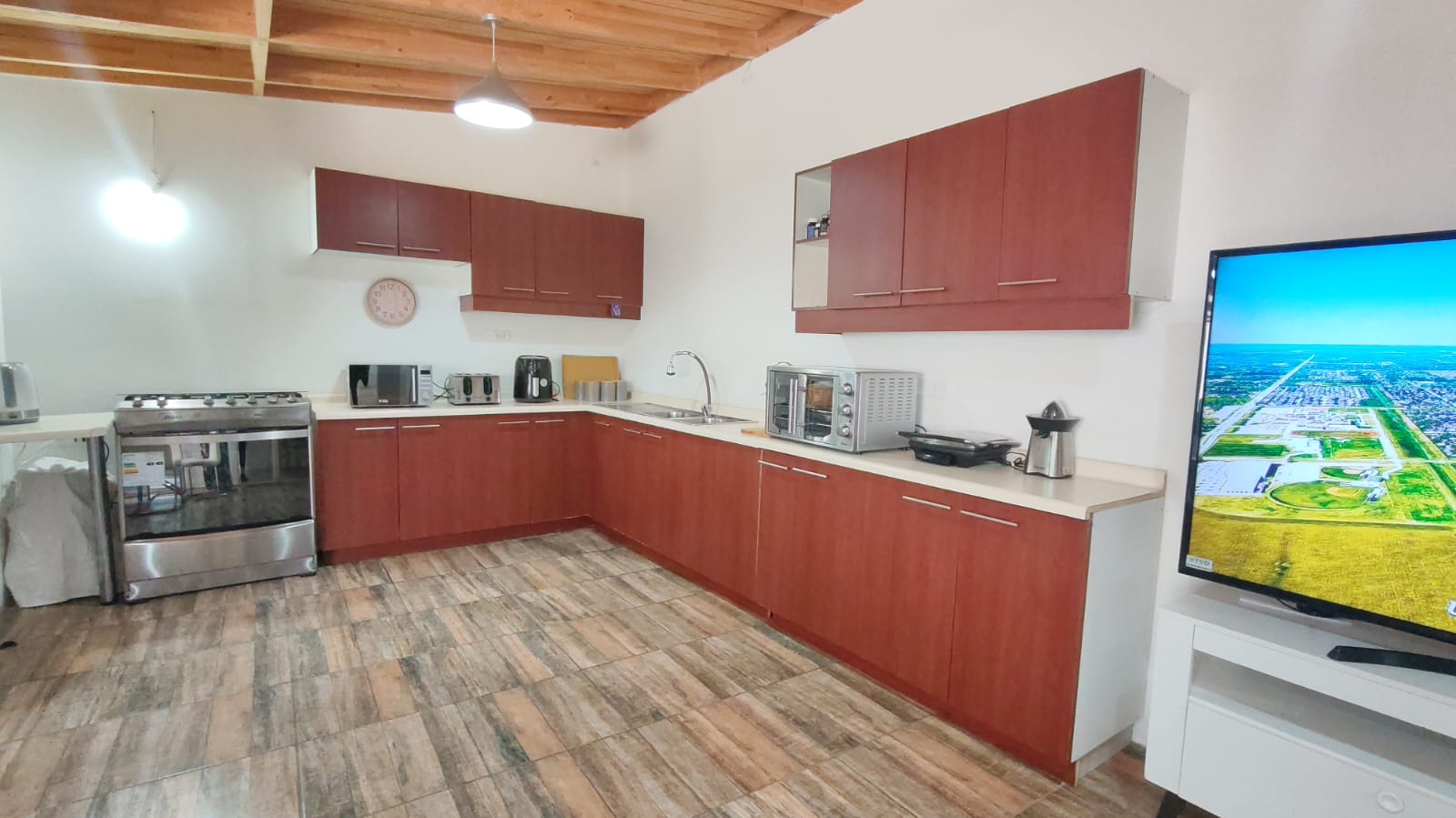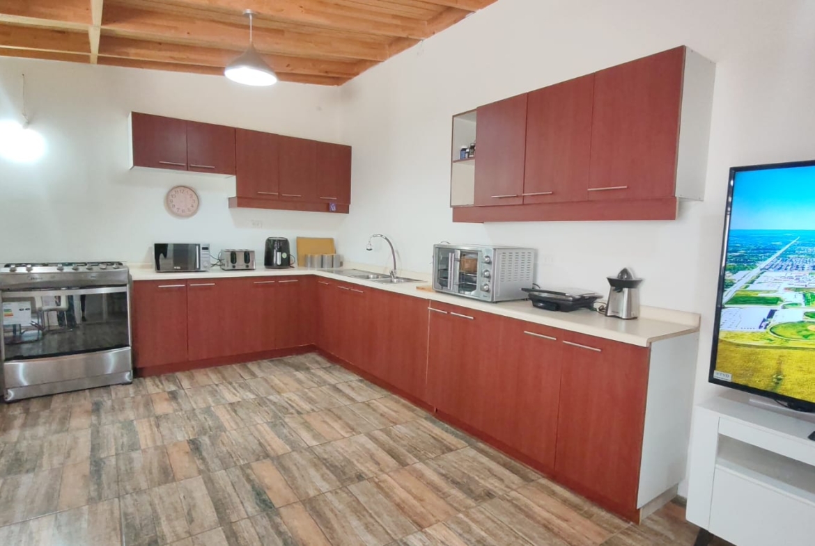 Gran cocina amoblada y remodelada, con espacio para comedor diario.