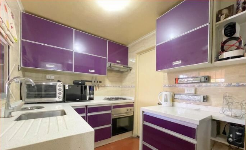Cocina amplia amoblada y equipada con horno, encimera y campana